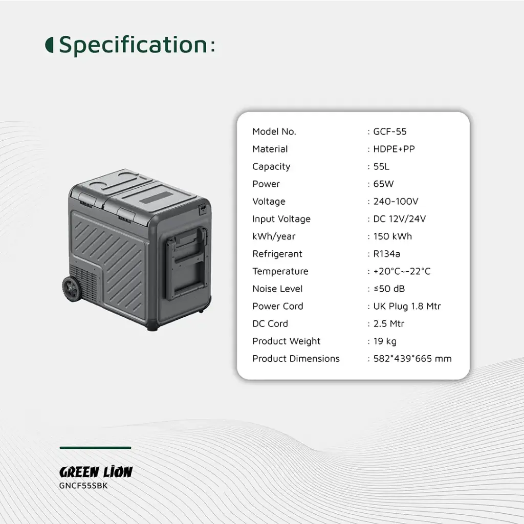 یخچال ماشین Green Lion GFC-55 با ظرفیت جادار ۵۵ لیتر، برای خنک نگه داشتن غذا و نوشیدنی‌های شما در رانندگی طولانی یا در حین فعالیت‌های خارج از منزل ایده‌آل است. با توان خروجی ۶۵ وات و محدوده ولتاژ ۱۰۰ تا ۲۴۰ ولت، این یخچال عملکرد بسیار خوبی در حال حرکت ارائه می‌دهد. این یخچال دارای کنترل دقیق دما و درب دو طرفه/قابل جدا شدن برای استفاده انعطاف‌پذیر است. قفل ایمنی کودک، روشی ایمن برای نگهداری فراهم می‌کند. نمایشگرهای لمسی و چراغ‌های داخلی، عملکرد خوبی را در شرایط نوری ضعیف ارائه می‌دهند. دو طبقه امکان نگهداری منظم را فراهم می‌کنند، در حالی که میله کششی و چرخ‌ها به راحتی حمل و نقل می‌افزایند. چه برای سفر و چه برای کمپینگ، این یخچال با خنک‌کننده سازگار با محیط زیست عرضه می‌شود زیرا عاری از CFC و HCFC است. همچنین دارای حالت‌های Eco و Max Speed ​​برای بهینه‌سازی مصرف انرژی و سرعت خنک‌کنندگی است. مانیتور باتری ۳ سطحی به محافظت از باتری وسیله نقلیه شما کمک می‌کند، که Green Lion GFC-55 را برای هر سفری مناسب و قابل اعتماد می‌کند.