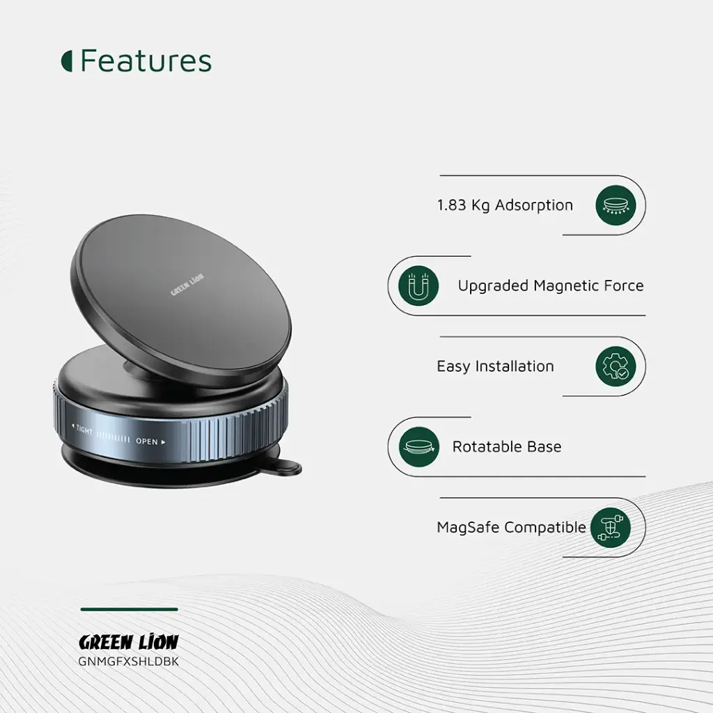 نگهدارنده جاروبرقی Green Lion Magno Flex چند منظوره و قابل اعتماد است؛ میتوان دستگاههای خود را با خیال راحت نگه داشت. این نگهدارنده از مواد بادوام ABS، PC و TPU ساخته شده و برای استفاده روزمره طراحی شده است. این نگهدارنده با داشتن 10 آهنربای قدرتمند N52، نیروی مغناطیسی ارتقا یافتهای را ارائه میدهد و نیروی جذب چشمگیر 1.83 کیلوگرم را به نمایش میگذارد. این مکنده قوی، چسبندگی محکمی را فراهم میکند و دارای فشار جذب قابل تنظیم در محدوده 18 کیلوپاسکال تا 65 کیلوپاسکال برای پایداری روی سطوح مختلف است. مجهز به پایه قابل چرخش 360 درجه، میتوانید دستگاه خود را به راحتی در بهترین زاویه برای مشاهده تنظیم کنید. این وسیله جانبی با نصب آسان، یک وسیله جانبی مناسب برای اتومبیل، خانه یا محل کار است. نگهدارنده جاروبرقی Green Lion Magno Flex با ساختار قوی و عملکرد انعطافپذیر، دستگاه شما را با خیال راحت و در هر موقعیتی در دسترس نگه میدارد.
